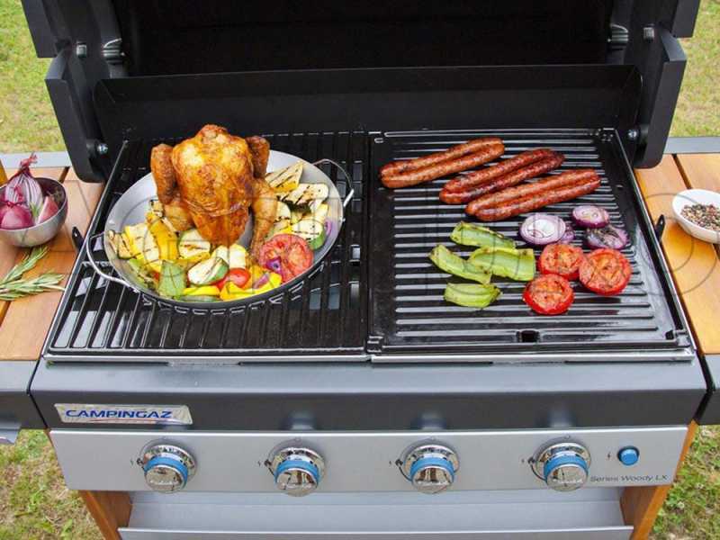 Bekommen Sie das Maximum von Ihren Grills und werden Sie ein echter Chefkoch! Ziehen Sie den zentralen Ring des Grillrosts aus Gusseisen aus und nutzen Sie die Einlage der Reihe Culinary Modular, die für Ihre Bedürfnisse ideal geeignet ist. Warum eine hausgemachte Pizza auf einen Pizzastein nicht zu vorbereiten? Oder die Gäste mit einer Paella auf einer antihaftbeschichteten Pfanne zu überraschen? Etnischer Abend? Kein Problem, der wok Culinary Modular isti deal für Sie! Florentinischer Steak? Gliedern Sie den Grillrostring aus Gusseisen weider ein und fertig! Die Einlagen Campingaz® Culinary Modular können die Bedürfnisse der Gourmets zu erfüllen. Eingeschlossen in den Modellen: 4 Series RBS EXS, 4 Series RBS LXS, 3 Series RBS L, 4 Series Cast Iron EXS, 4 Series Classic LS Plus, 3 Series Classic LS Plus. Verfügbar als Zubehör für die Modelle: 4 Series Classic L, 4 Series Woody L, 3 Series Classic L, 3 Series Woody